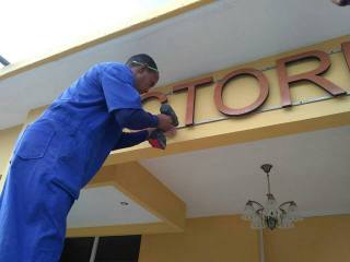 Jagüey Grande, Cuba. – Los trabajadores de la Cooperativa No Agropecuaria de Andamios y Cofres (SANCOF) de Matanzas, laboran en los detalles de acabado de la nueva sede de la emisora Radio Victoria de Girón, en el municipio matancero de Jagüey Grande.